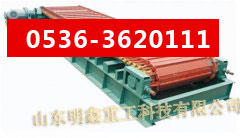 二、用途和使用范圍 GBZ型重型板式給料機(jī)廣泛應(yīng)用在采礦、冶金、建材和煤炭等工業(yè)部門 。該機(jī)主要用于具有一定倉壓的料倉和漏斗下面,將各種大容重物料短距離均勻、連續(xù)的輸送給各種破碎、篩分和運(yùn)輸設(shè)備,特別是用在初碎以下更為合適。它不僅合理處理粗物料,對細(xì)粒物料也同樣適應(yīng)。可在惡劣的環(huán)境中完成繁重的工作,對物料的粒度成份的變化,溫度、粘度、冰霜、雨雪的影響或冰結(jié)的物料都有較大的適應(yīng)性,給料量均勻準(zhǔn)確可靠。在使用過程中不允許卸空物料及大塊物料直接沖擊鏈板表面,更不允許在鏈板表面進(jìn)行爆破。 安裝傾角為0~25°,傳動裝置可左裝或右裝,在物料運(yùn)行方向右側(cè)為右傳動,反之為左傳動。 三、特點(diǎn) 1.給料機(jī)的給料速度按下列系列選取,其偏差不得超過±10%: 2.傾斜安裝時附有防止輸送鏈逆轉(zhuǎn)的制動裝置。 3.驅(qū)動裝置采用直交行星串聯(lián)組合式減速機(jī)傳動,重量輕、機(jī)械效率高、壽命長、結(jié)構(gòu)緊湊、占地空間小。 4.主軸裝置采用無鍵光軸,主軸與鏈輪、星輪均采用脹套聯(lián)接方式,其機(jī)器的安裝、拆卸、維修十分方便。 5.鏈板裝置采用雙圓弧搭接結(jié)構(gòu),保證使用過程中不漏料。 6.采用坦克鏈作傳動鏈,具有節(jié)距誤差小,無需潤滑,安裝維修方便,具有良好的互換性和較長的使用壽命。 7.應(yīng)用帶導(dǎo)向的支重輪和尾軸上的改向光輪嵌入鏈環(huán)的內(nèi)鏈環(huán)之間的結(jié)構(gòu),****地解決了跑偏這一問題。 采用復(fù)合彈簧式緩沖拉緊機(jī)構(gòu),減少了沖擊破壞,延長了整機(jī)的使用壽命。 |